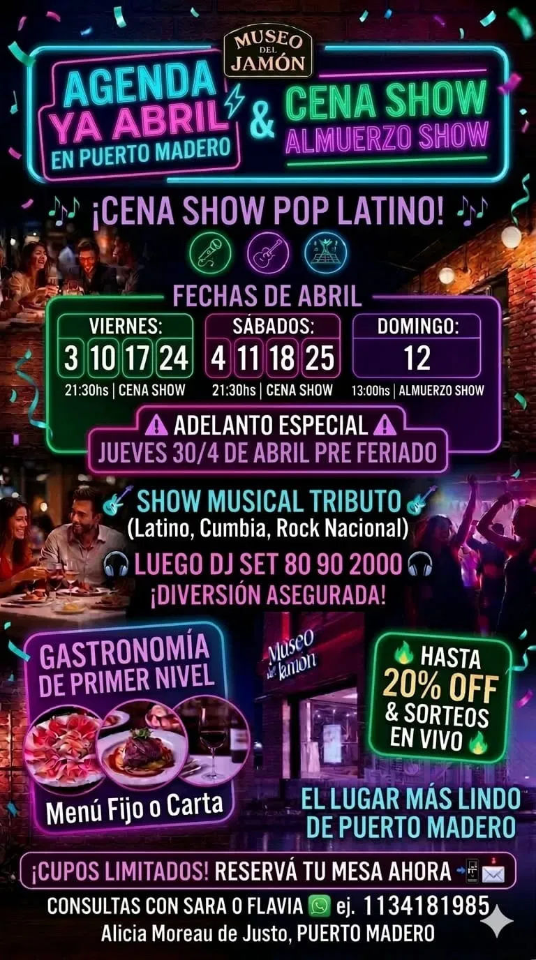 LA MEJOR CENA SHOW DE BUENOS AIRES - CABA. VENI A LA CENA SHOW MAS LINDA en PUERTO MADERO Ahora con Noches de Diversion VIERNES SABADOS PREFERIADOS y ESPECIAL ALMUERZO SHOW LOS DOMINGOS Te Esperamos CON SHOW LATINO RETRO y ACTUAL CUMBIAS CUARTETOS ROCK NACIONAL + DJ con Música 80 90 2000