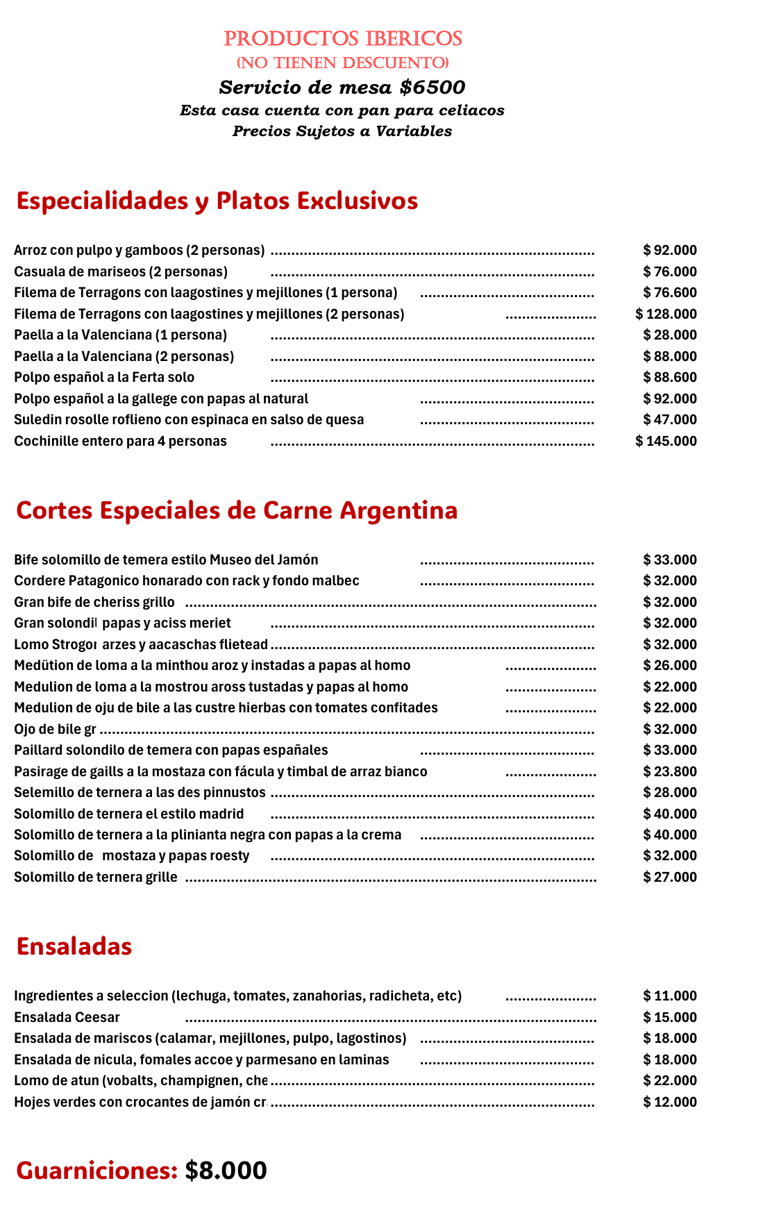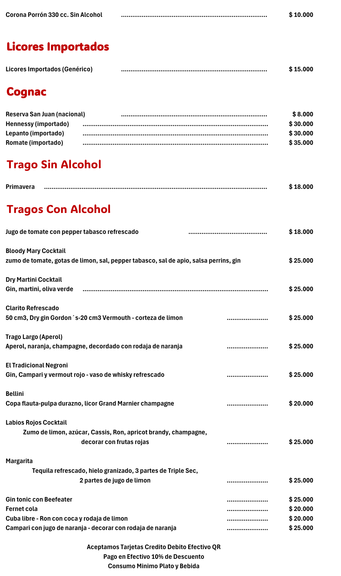 CON CARTA (CONSUMO MINIMO PLATO y BEBIDA -