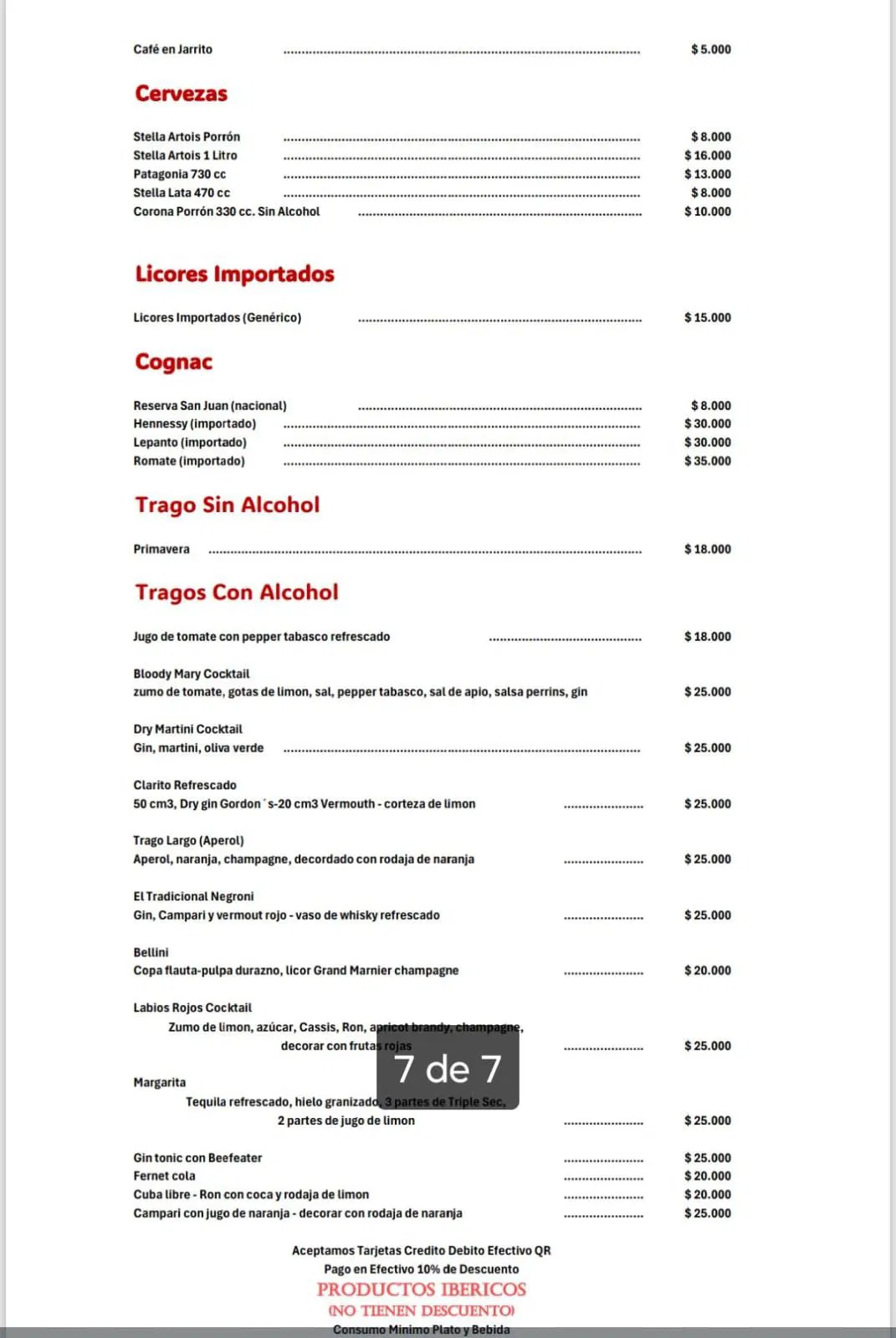 Consumo Minimo Plato y Bebida - Precios Sujetos a Posibles Variables