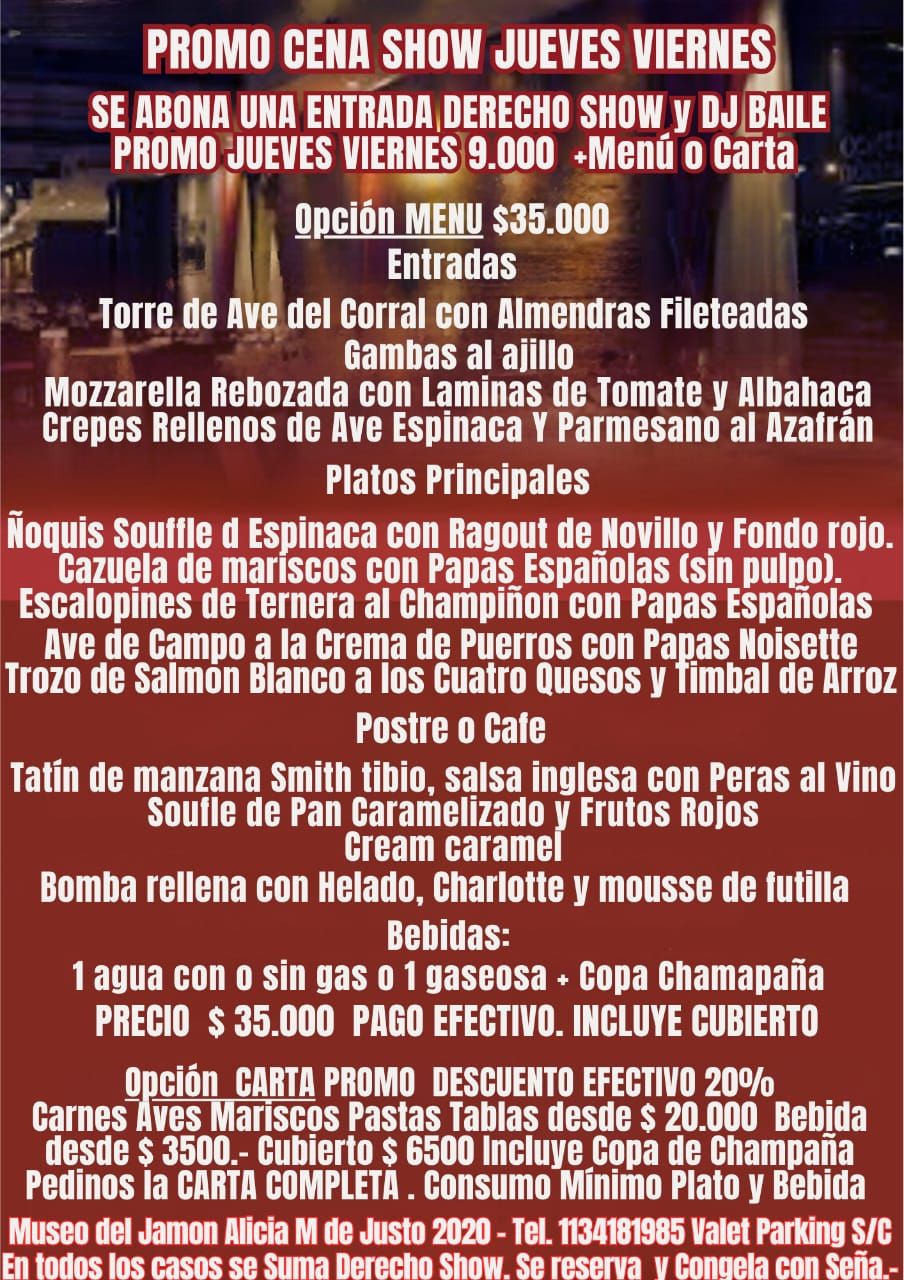 IMPORTANTE ESTOS MENUES Y PROMOS SON VALIDOS PARA EL LOCAL DE PUERTO MADERO Y UNICAMENTE DIAS DE CENA SHOW.