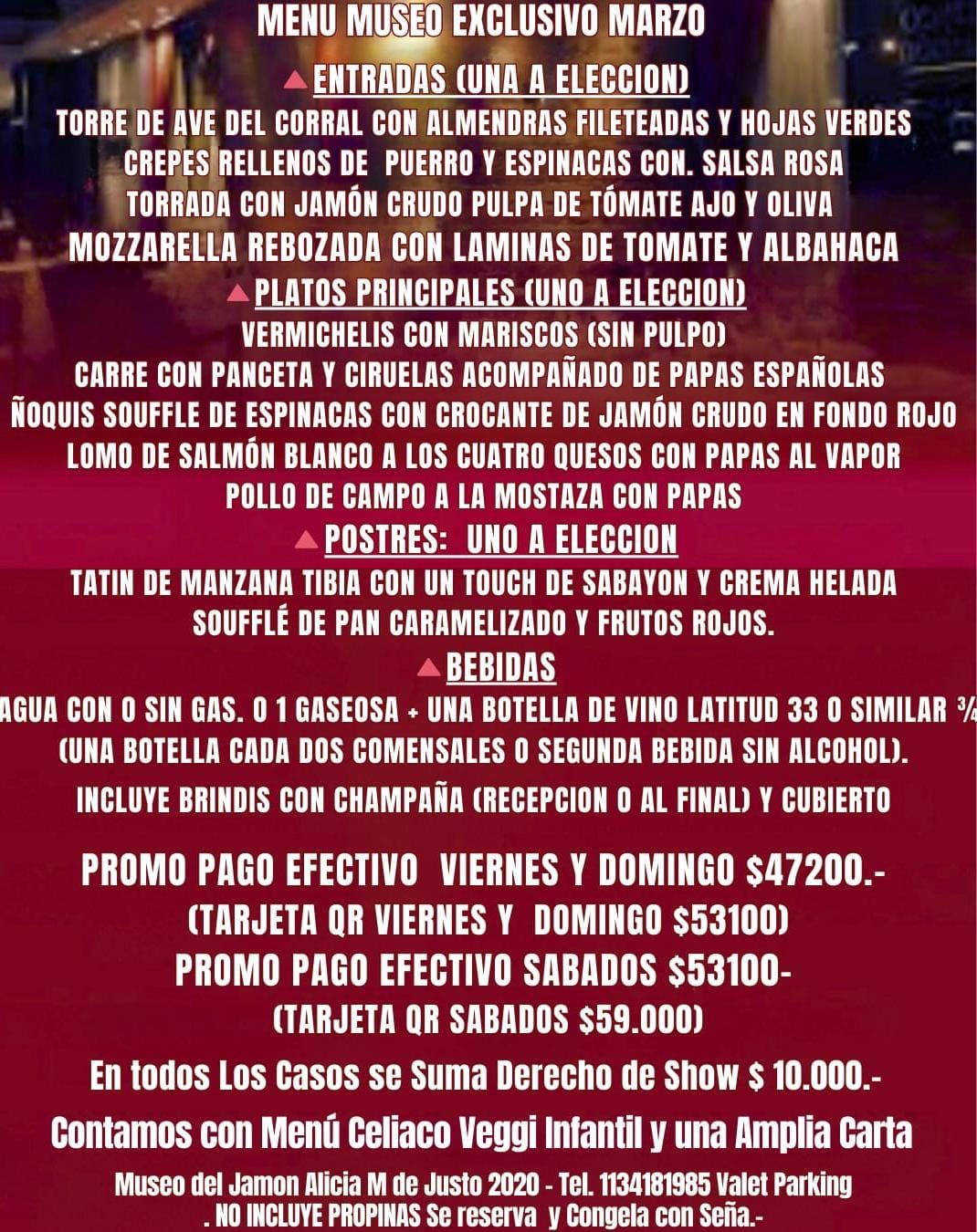 IMPORTANTE ESTOS MENUES SON VALIDOS PARA EL LOCAL DE PUERTO MADERO Y DIAS DE CENA SHOW.