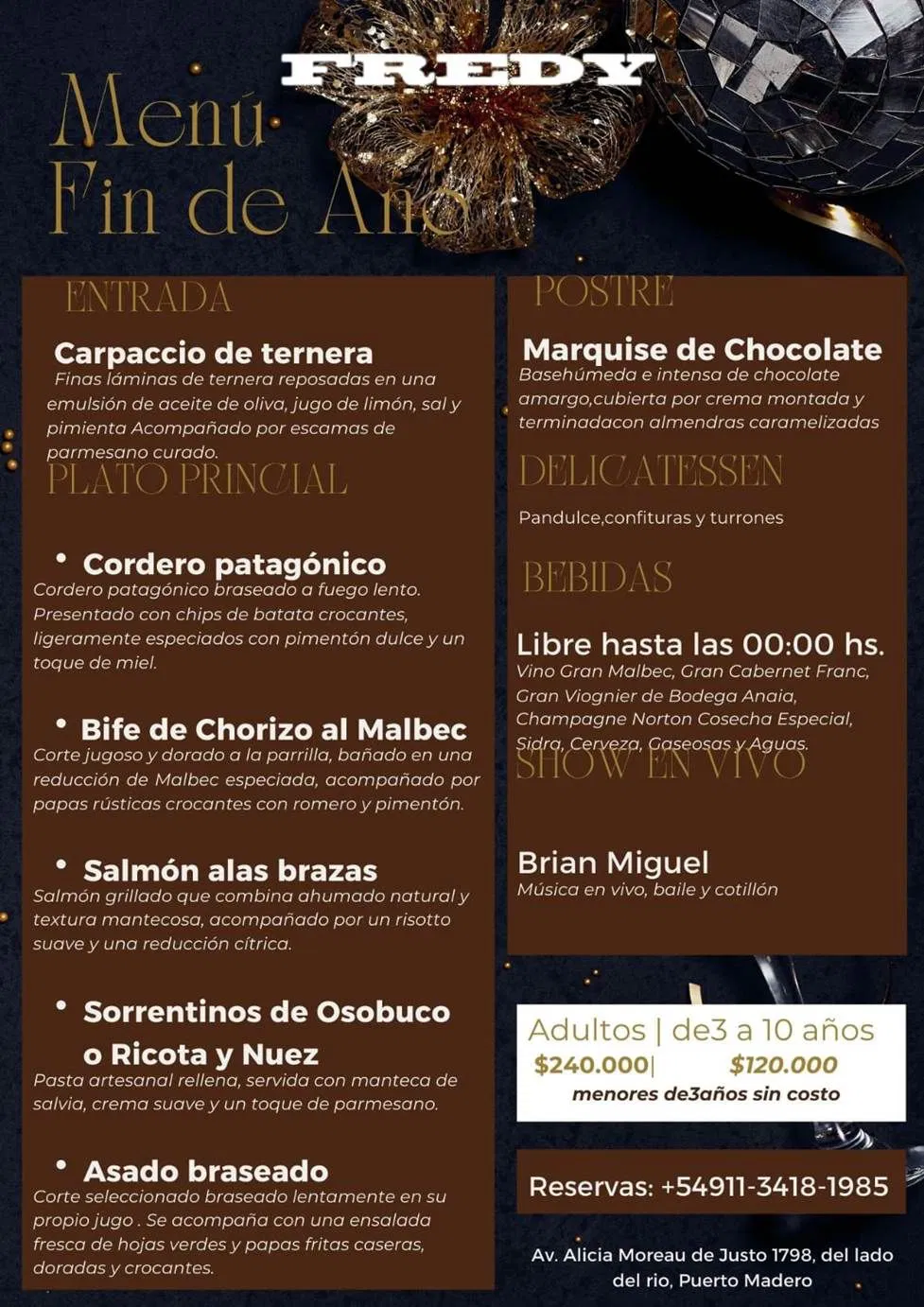 RESTO & PARRILA con SHOW PUERTO MADERO -  ESPECIAL FIESTA DE AÑO NUEVO