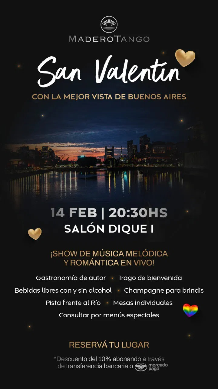 MIRADOR DIQUE UNO PUERTO MADERO Especial ❤Cena Show San Valentín❤ SABADO 14-2
